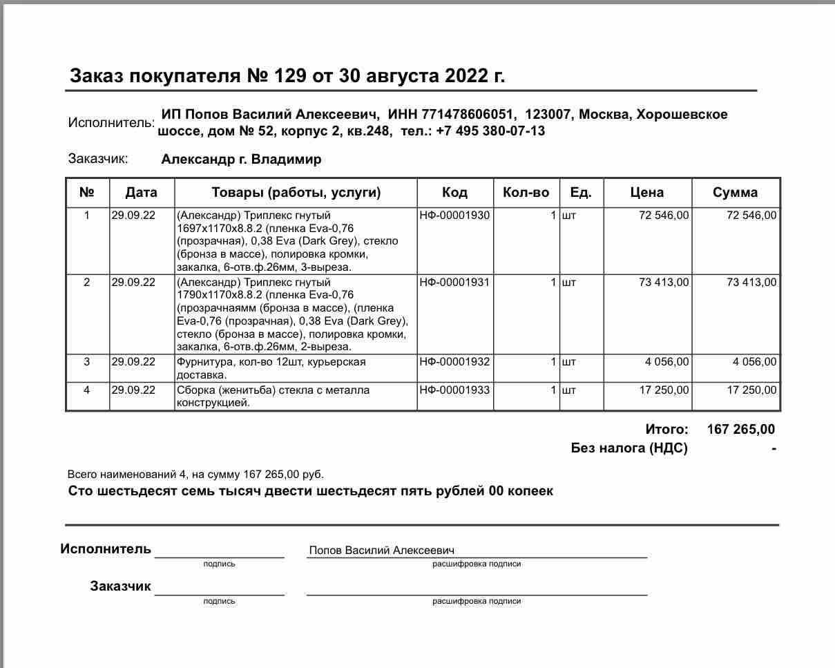 Кинули меня на 167 тысяч рублей. Индивидуальный заказ гнутый триплекс, гнутое стекло. Сначала сказали, что договор будет на НПП Стефекс. Потом выставили счет от ИП Попов Василий Алексеевич. На вопрос, где договор с НПП Стефекс, настойчиво и убедительно лили в уши, что для "оптимизации" и "ускорения производства" лучше работать через ИП Попова. Потом лили, что при оплате на карту будет дешевле. Разводят красиво, в общем. Обещали "всё сделать в лучшем виде за 2 недели". Ложь. На сайте http************ один сплошной развод.